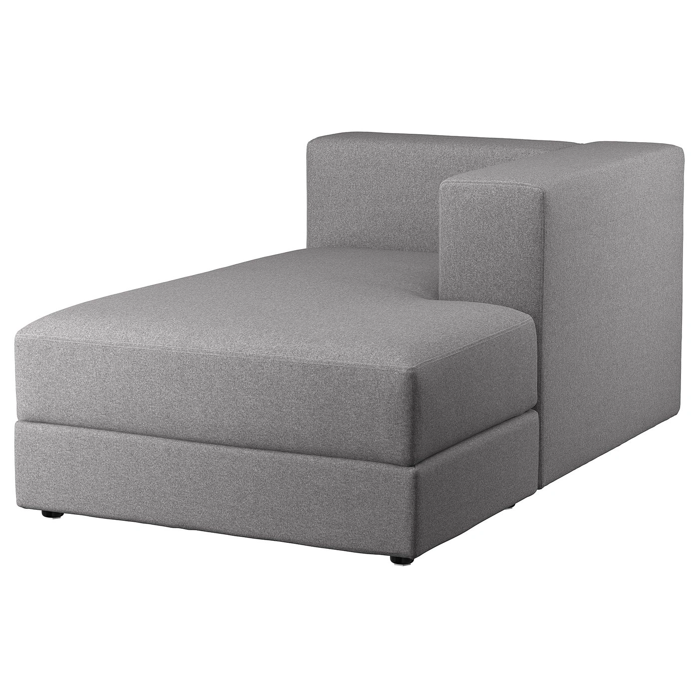 Módulo de chaise longue con reposabrazos en gris que ofrece un lugar confortable para descansar. Se puede usar solo o combinado con otros módulos. Los cojines aseguran un soporte adecuado y suavidad. La estructura permite reorganizar según el espacio disponible. La tela es resistente y fácil de mantener.