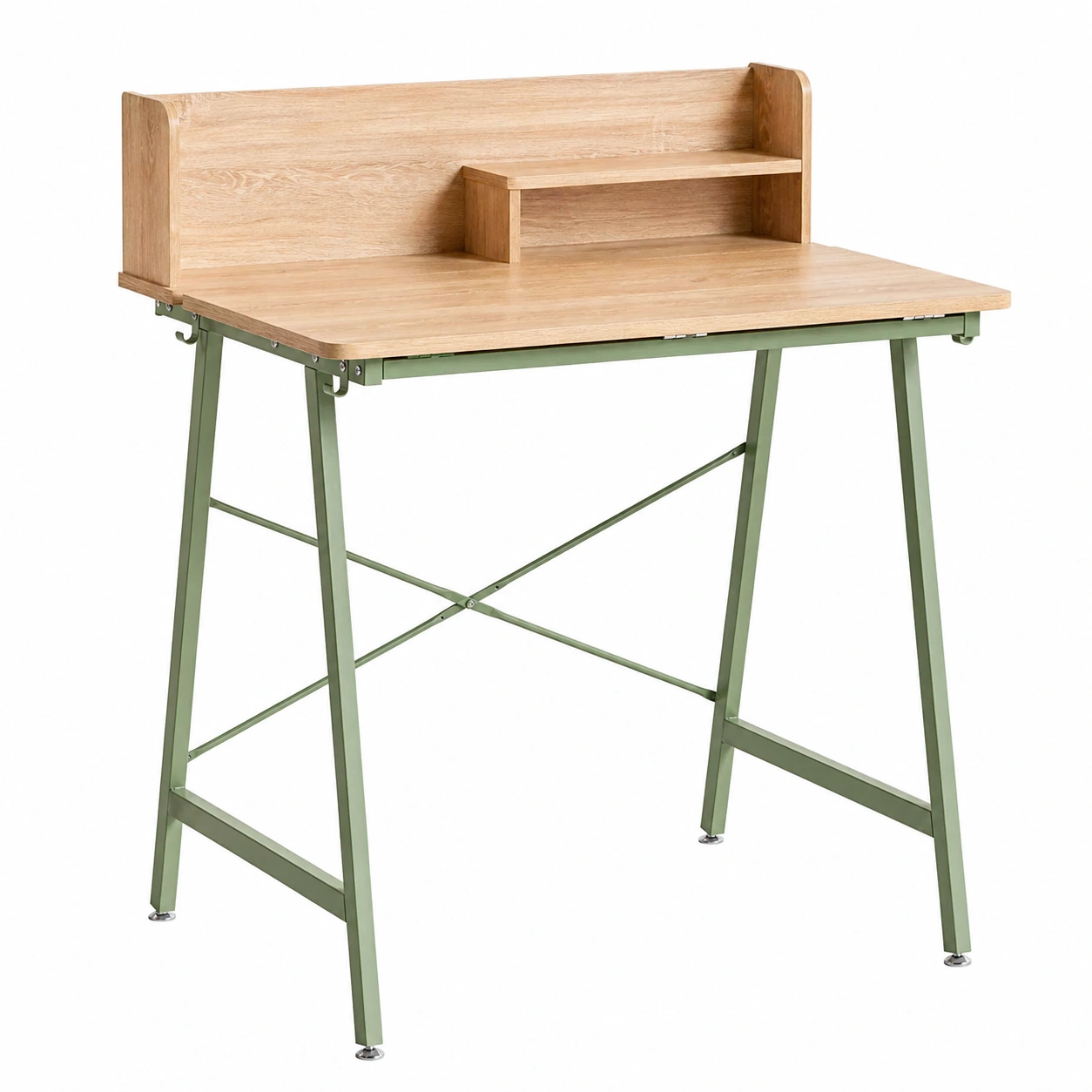 Mesa funcional dise?ada para tareas de dibujo, estudio o trabajo creativo. Su tablero amplio permite trabajar con comodidad, mientras que el estante superior facilita la organización de materiales. La combinación de estructura metálica resistente y superficie en acabado madera aporta durabilidad y un estilo moderno adaptable a distintos espacios.