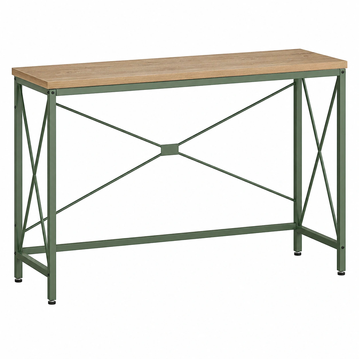 Este escritorio presenta una estructura metálica resistente con dise?o geométrico cruzado que aporta estabilidad y estilo moderno.