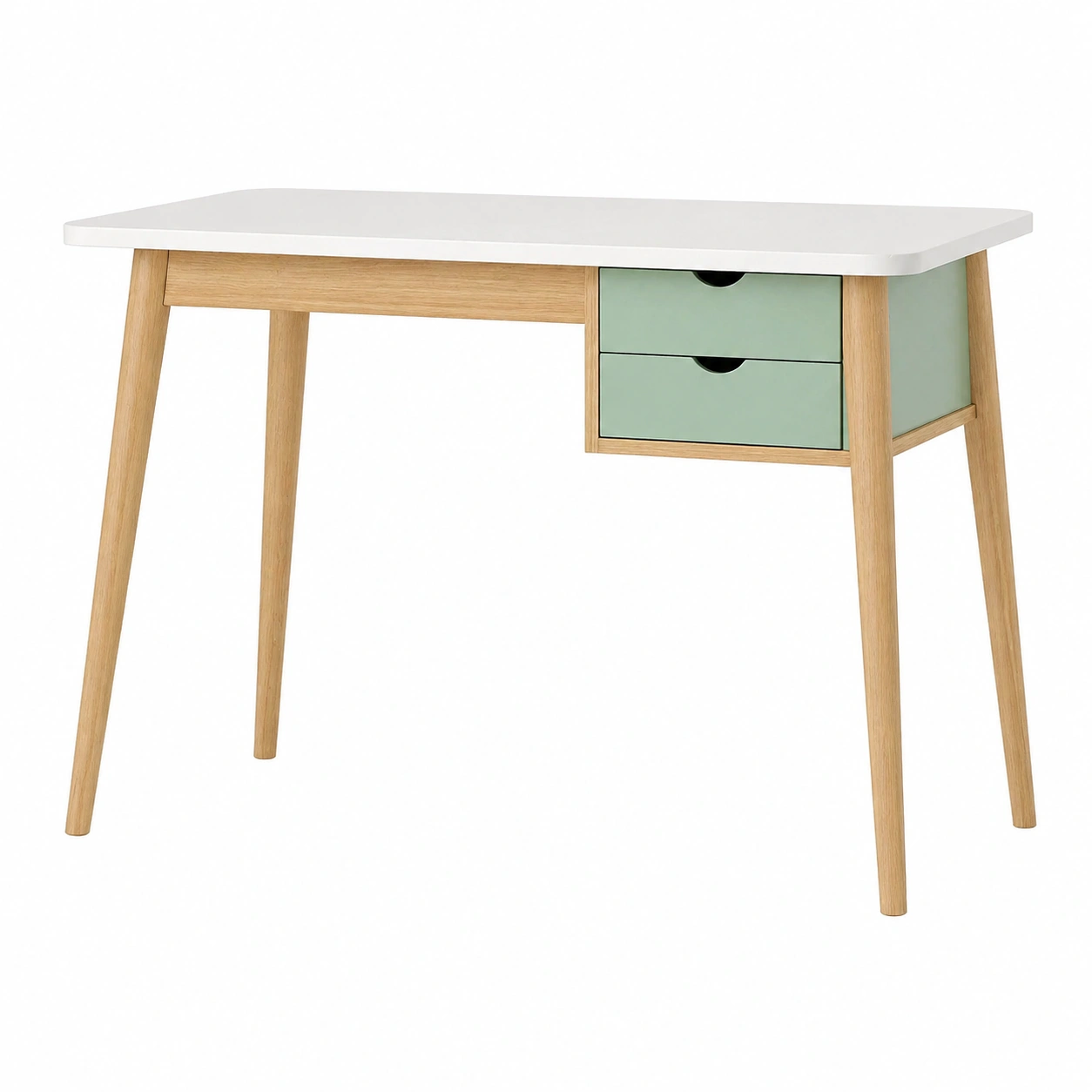 Este escritorio combina funcionalidad y estética con un dise?o limpio y actual pensado para espacios modernos. Su estructura en tonos claros aporta luminosidad visual, mientras que los cajones permiten mantener el orden en el área de trabajo. Es una opción versátil para oficinas en casa, dormitorios o estudios, integrándose fácilmente en diferentes estilos decorativos.